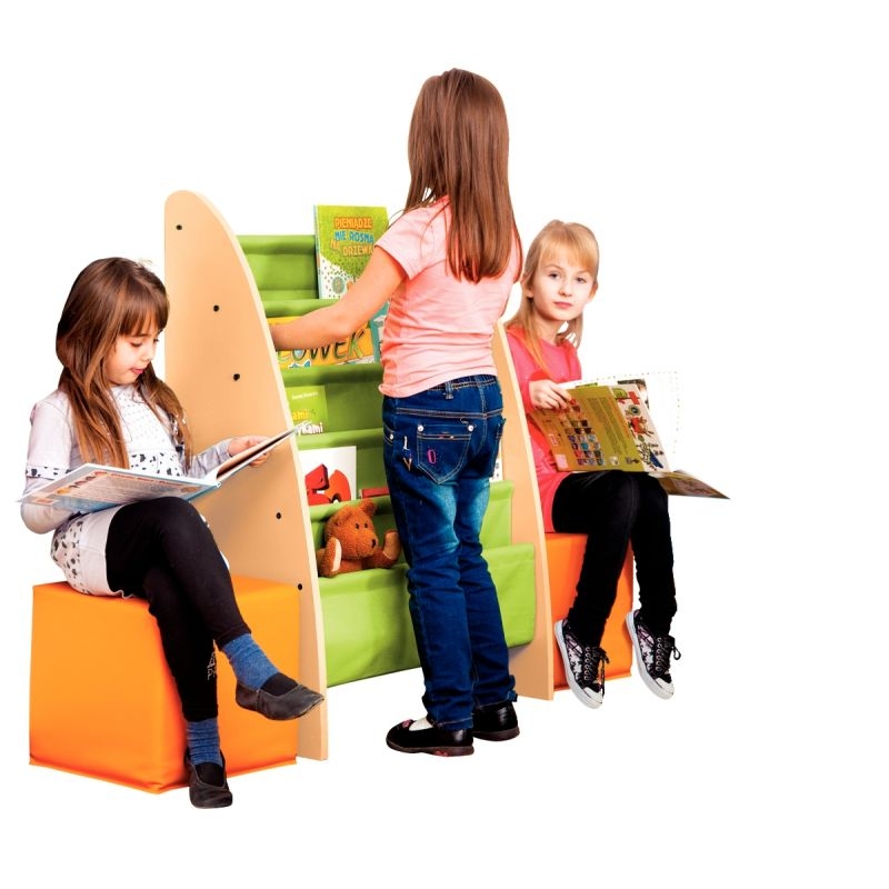 Armature en bois avec 5 poches en tissus très résistant pour y accueillir des livres.